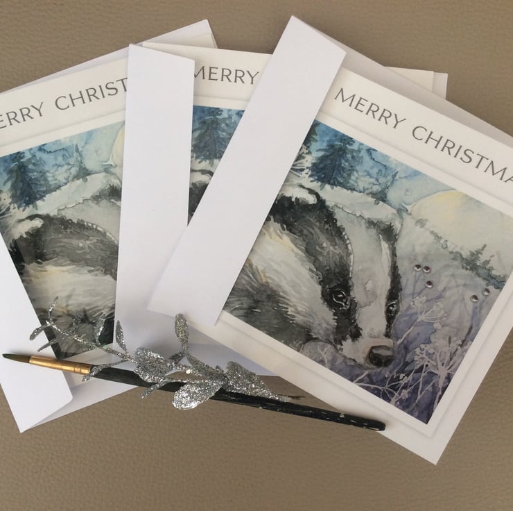 Why not keep this beautiful pack of 3 Christmas cards in a draw ready for Christmas? I specialise in creating watercolour paintings and greeting cards. This pack of three cards are prints of one of my original watercolour paintings.The image has been printed onto card and has a gloss finish. The cards have a seasonal message inside and come with white envelopes. Dimensions are approximately 14cm 14cm.Original watercolour painted Christmas cards also available.
