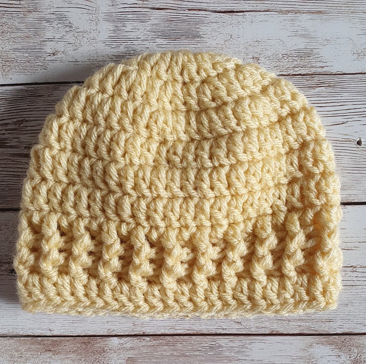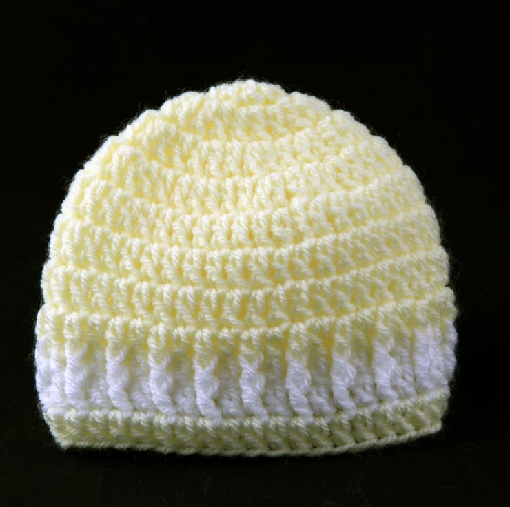 Crochet Baby Beanie Hat in Yellow and White, New Baby Gift, Baby Shower Gift
