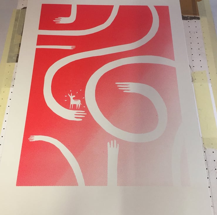 Printed by myself at Hunk Print, Sheffield, UK. Each one is slightly different, as is the nature with screen-prints.