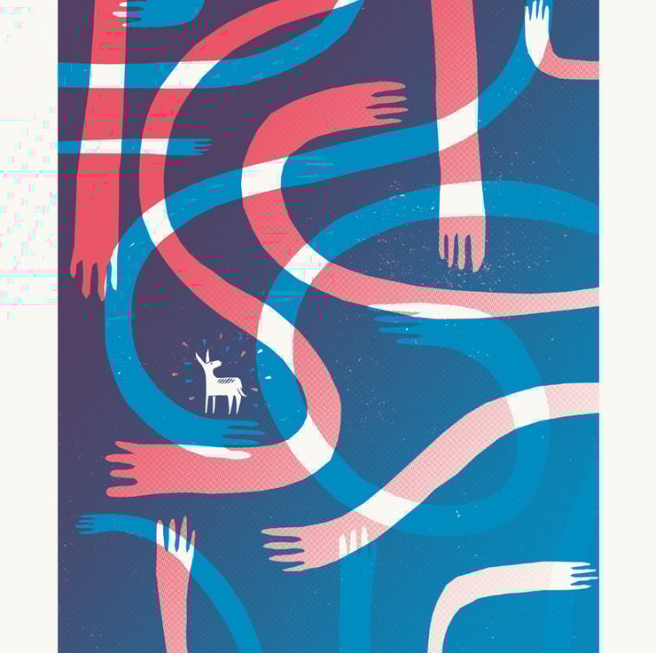 The prints started as a way to celebrate donkeys, as I feel they are somewhat undervalued in art and society, and as time has gone on the compositions have become more and more surreal!