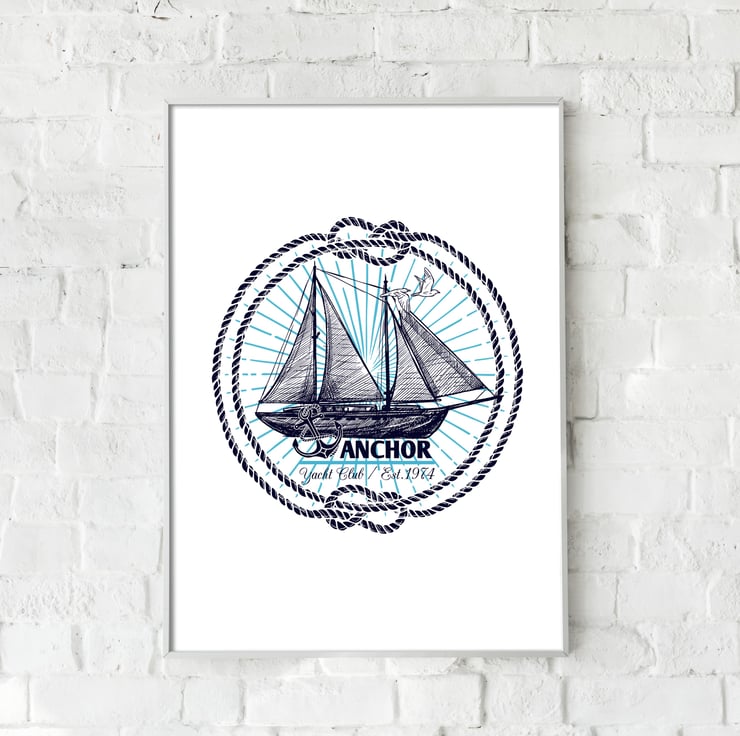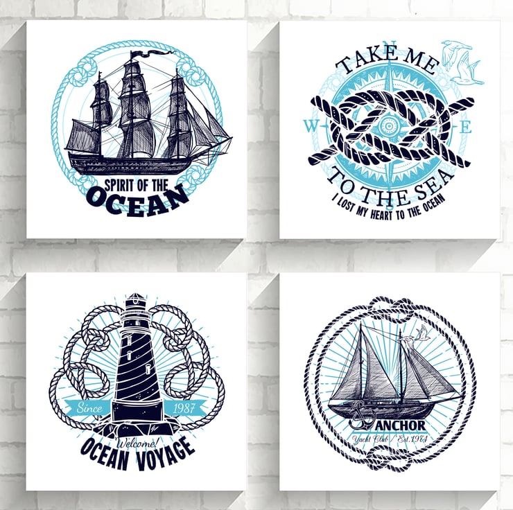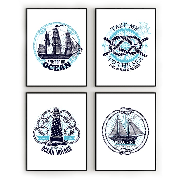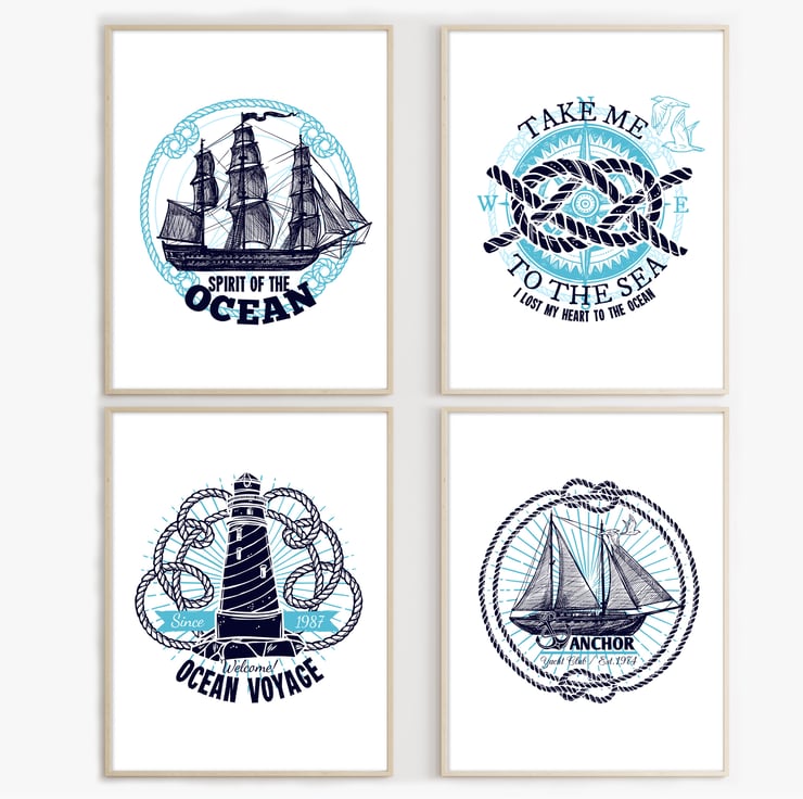 Marine emblems prints, Nautical wall decor, Bathroom wall art