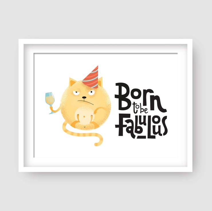 Funny cat print, born to be fabulous quote cat print, gift for cat lover