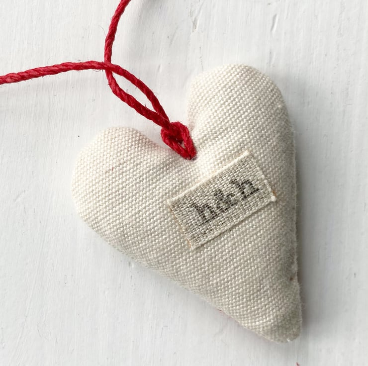 Cute as a button dinky heart in creamy white and red. Filled with locally grown fragrant lavender and are finished with a red natural hemp twine hanging loop.