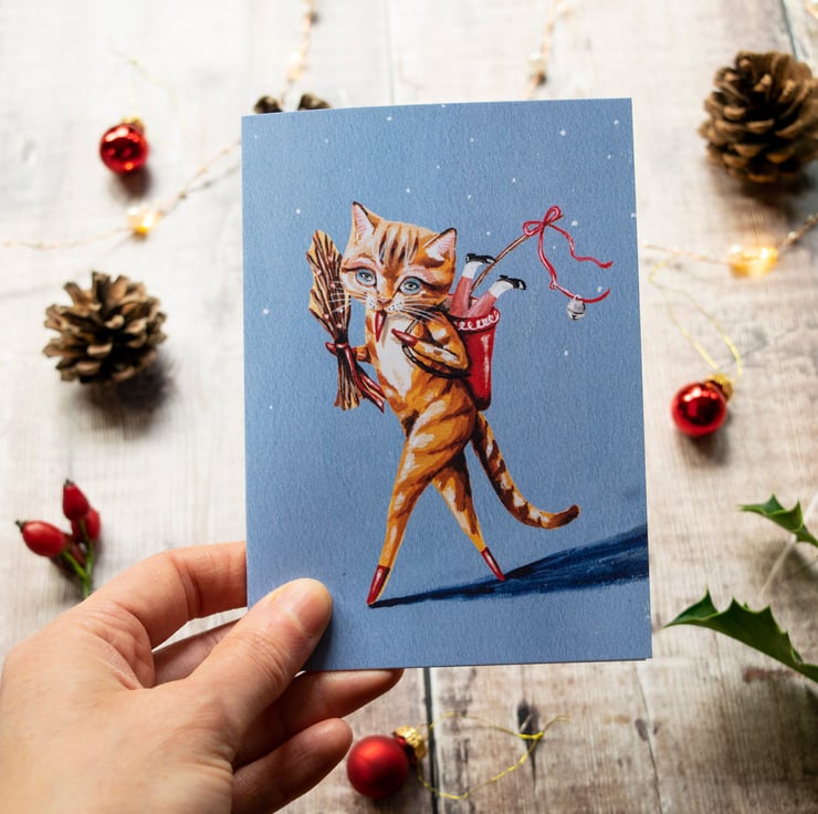 A kitschy cute ginger Krampus cat festive card, A6 in size. Purrrrfect for the Krampus fans out there!