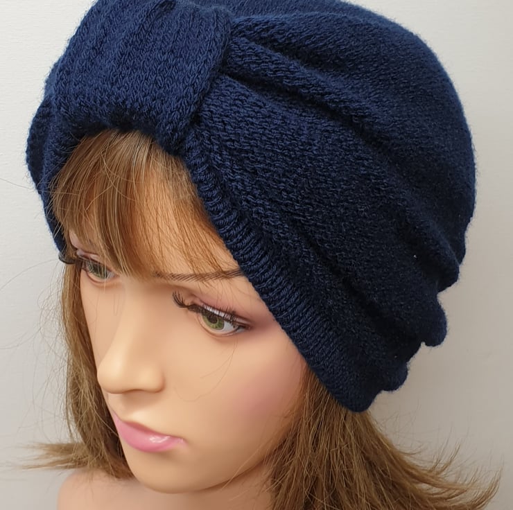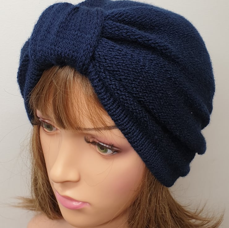 Navy blue women turban hat.