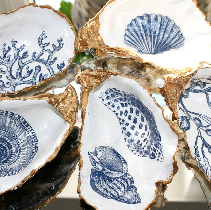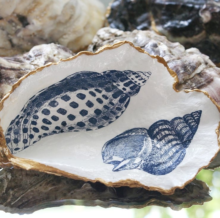 Decoupage and hand painted, this oyster shell has been harvested from the sea off the Devon coasts and transformed in to a trinket dish.