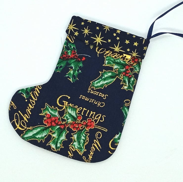 A little stockings to just hang or use as gift bag that can be put on the tree.