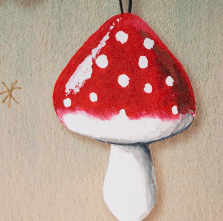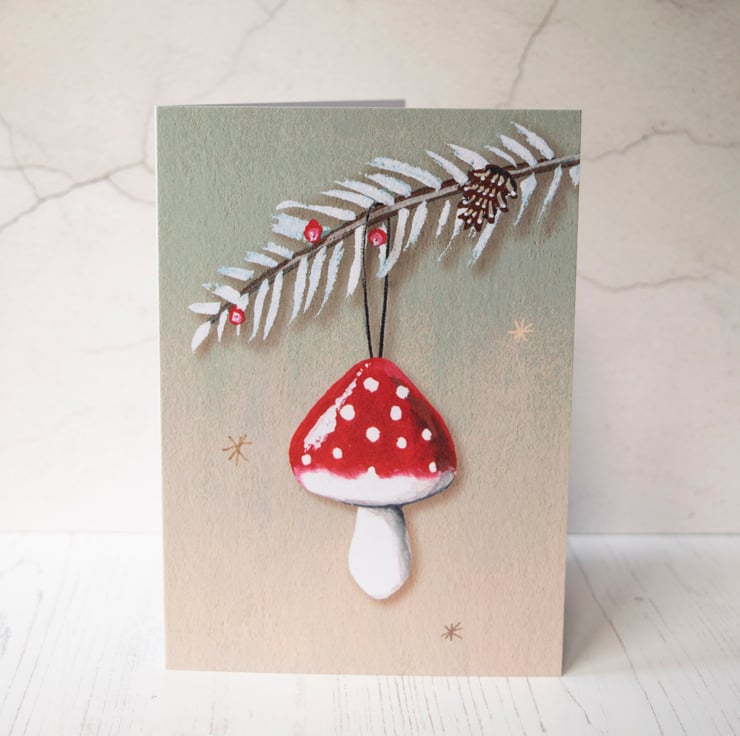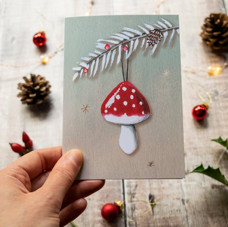 Designed and illustrated by me, and printed within the UK. The spotted mushroom is also available as a mini wooden hanging ornament within my shop!