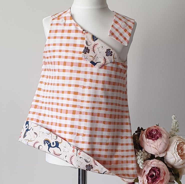 Not only is this a beautiful pinafore in stunning horse fabric, but as it's reversible you get two handmade dresses in one! With double buttons you can easily fasten it whichever side you choose to show making this classic design perfect for everyday wear or a special occasion.