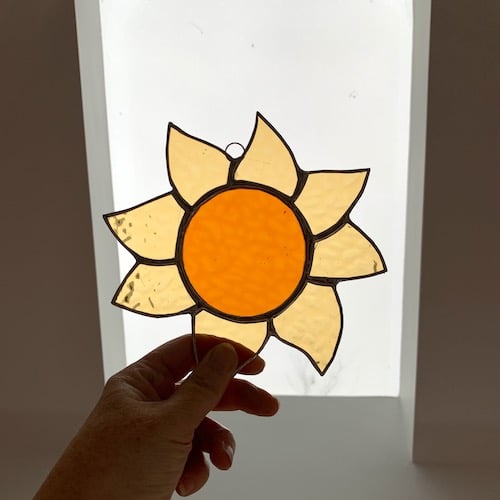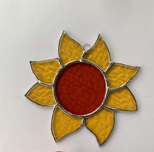 I started making sunflower as a result of a sunflower challenge set in our close and thought I’d make my own flower in glass and I think this is a very nice design.