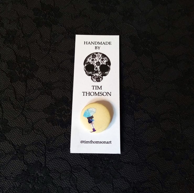 All my badges are metal with a plastic back at 25mm (1 inch) diameter, based on my original designs and professionally printed, before being lovingly hand made by myself. They come presented on a backing card, making them ideal gifts.