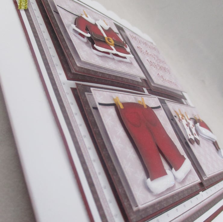 Christmas Santa's Washing Line, 3D Decoupage Greeting Card, Personalise