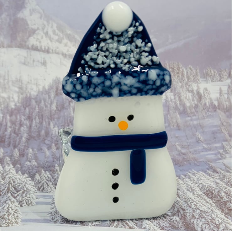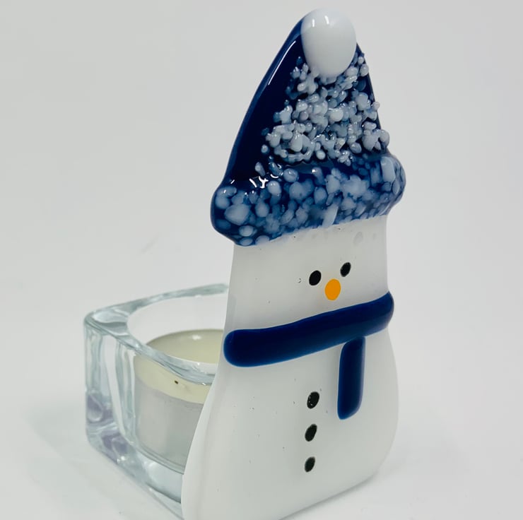 Snowman Hand fused Glass Tea Light holder. (With tea light)