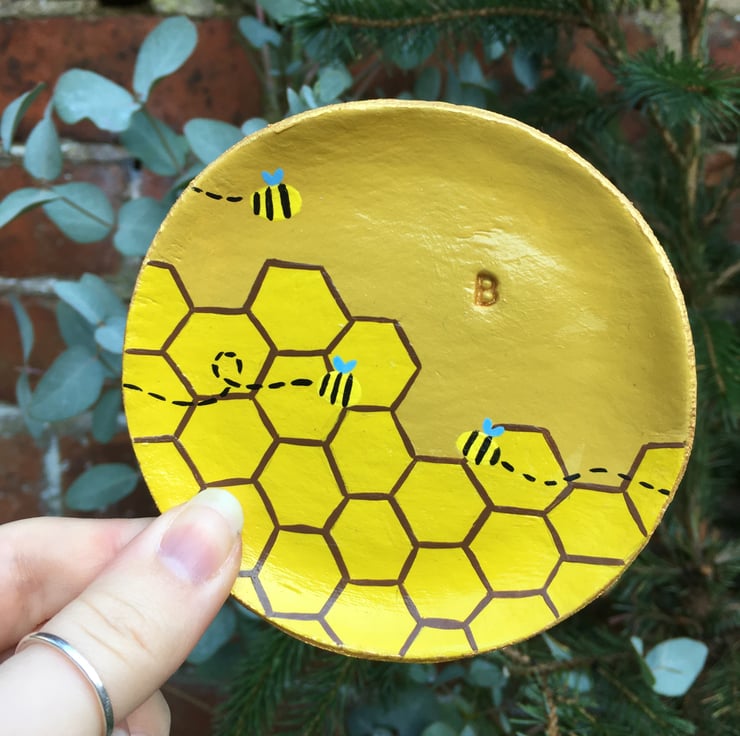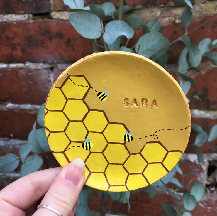 Personalised Honeycomb and Bumblebee trinket dish