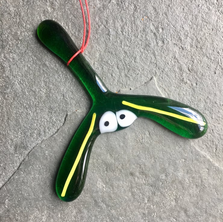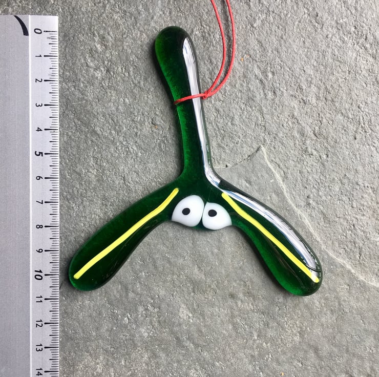 The mistletoe is made from fused glass and as such is very fragile and vulnerable to being chipped or to break if dropped. Please treat with care when handling as items damaged by being dropped by the buyer will not be considered faulty for refund. Variations in colouration and design make each one its own character, and this is intentional. Please note, these gifts are not toys and are therefore unsuitable for small children to play with. All items posted will be safely wrapped to protect them on their journey in tissue paper, cushioned and boxed for posting. Thank you for buying from my small business!