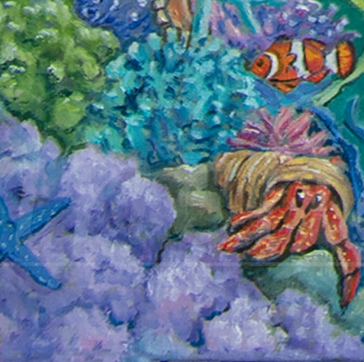 A delightful painting by Sonia Finch of mermaids, a humpback whale, dolphins and coral reef aquatic life to captivate your child or inner child. As one falls asleep you may ask 'where will the Atlantis star gate take me in my dreams? The painting reminds us that we are the guardians of our beautiful water world, rich with mythology and legend that is forever expanding with our imaginations.
