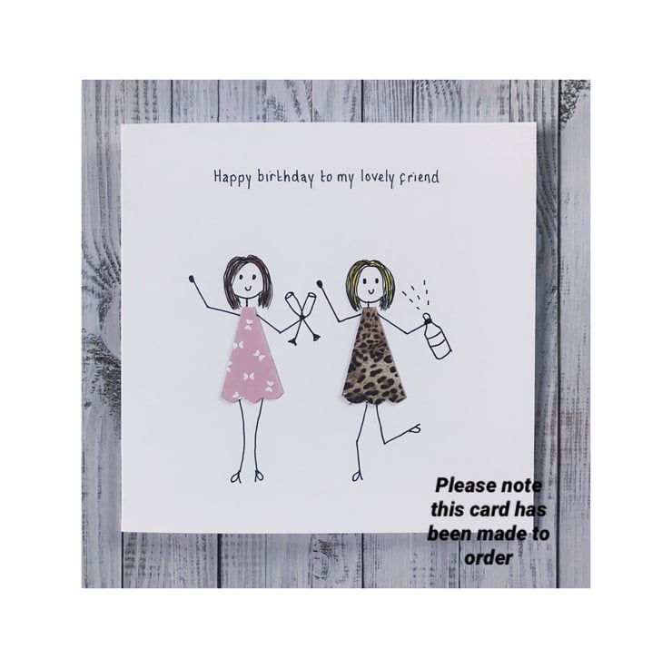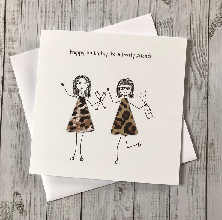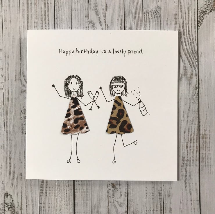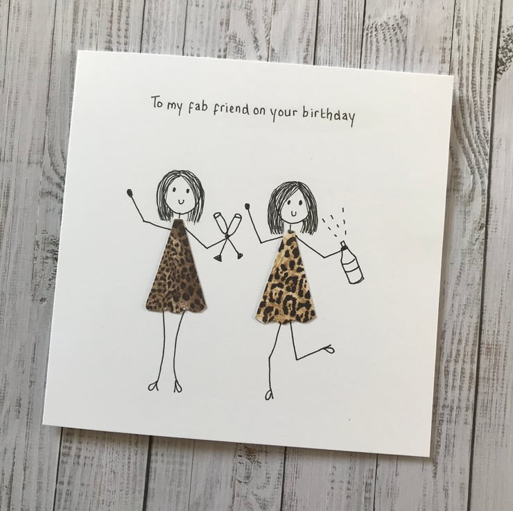Each of my cards are hand drawn by me and not printed (apart from the leopard print paper used for the dresses). If you would like to change the caption on the front then please message me once you have placed your order.