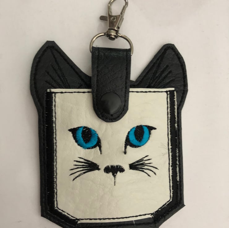 This listing is for 1 cat gel holder made from faux leather with a metal clip and plastic snap closure.