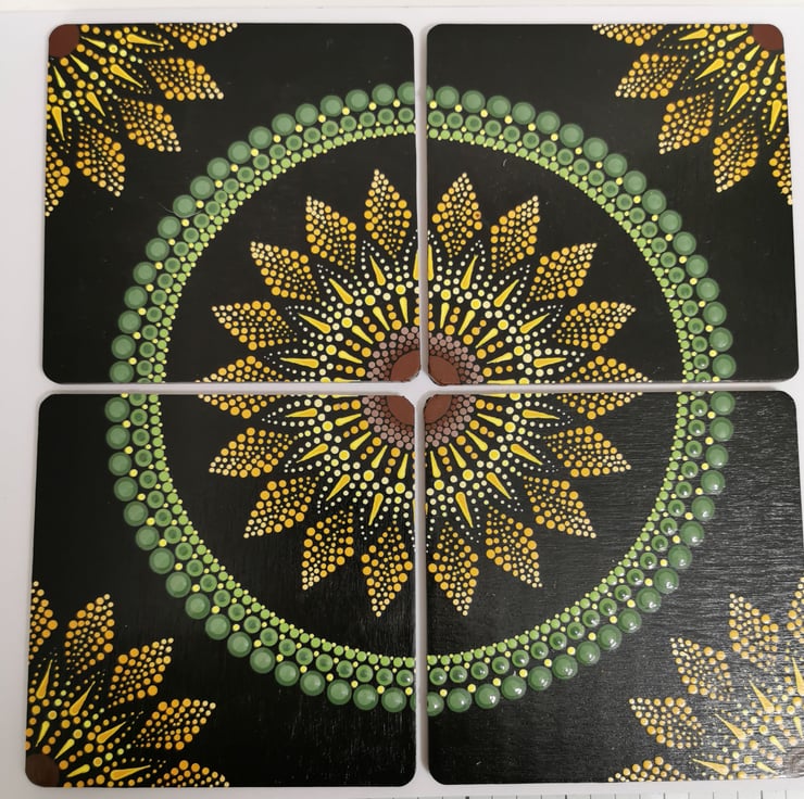 Beautiful hand painted dot mandala coasters of approx 4 x 4 inches each. This piece of art would make a lovely home decor piece or a wonderful addition to your dining set for you or as a lovely gift.