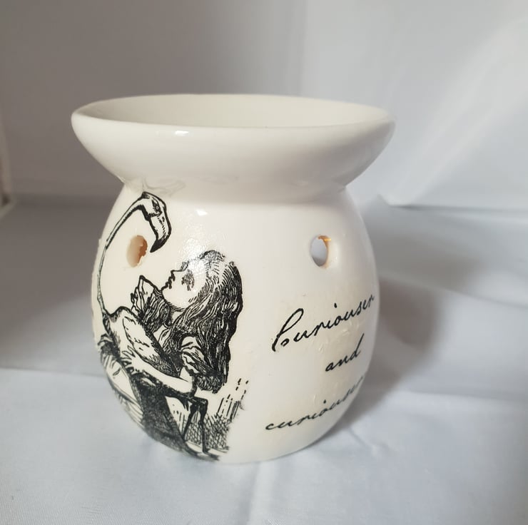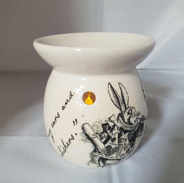 Ceramic oil or wax burner with Alice in Wonderland decoupage image
