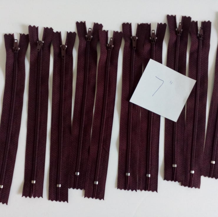 This is a Pack of 10, brown nylon 18cm (7") zips.