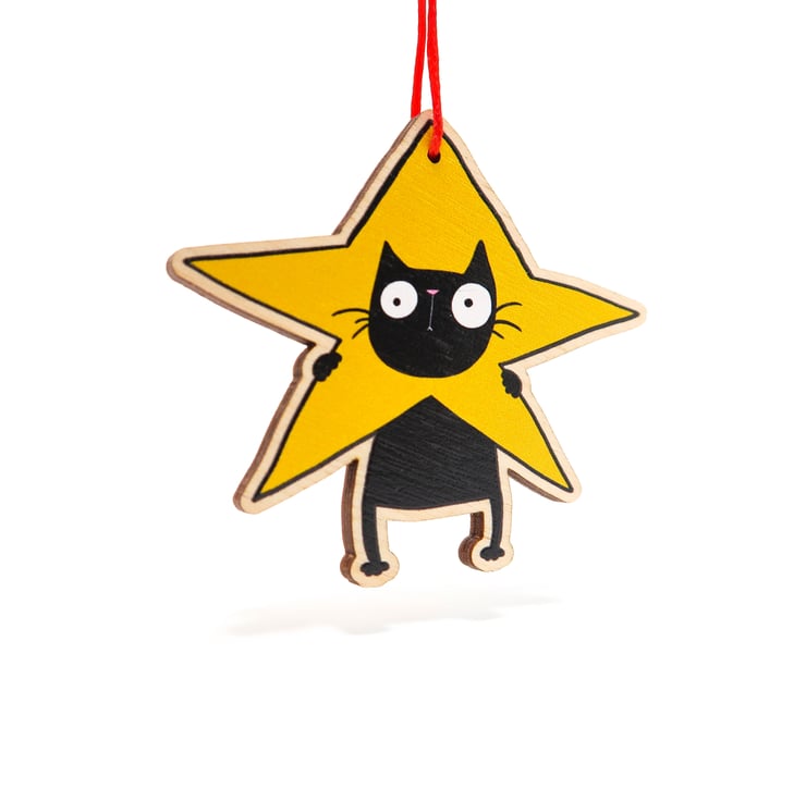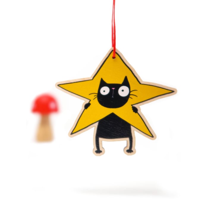 Each little black cat is 2.5 high inches and comes with a red hanging cord, all ready to hang on your Christmas tree!