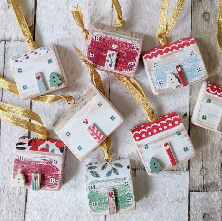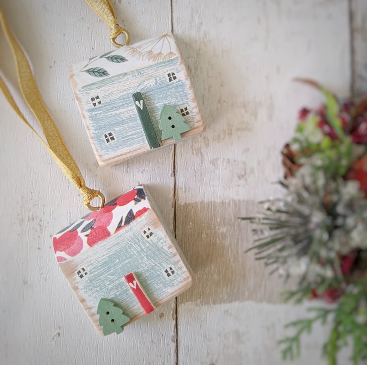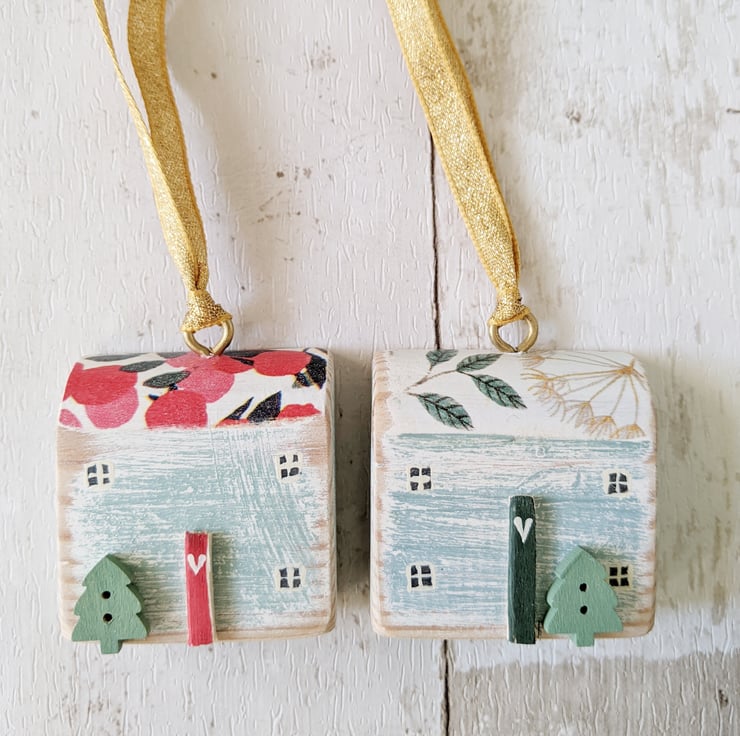 I have chosen two houses that compliment each other for this little set. Hang them together or give one as a gift!