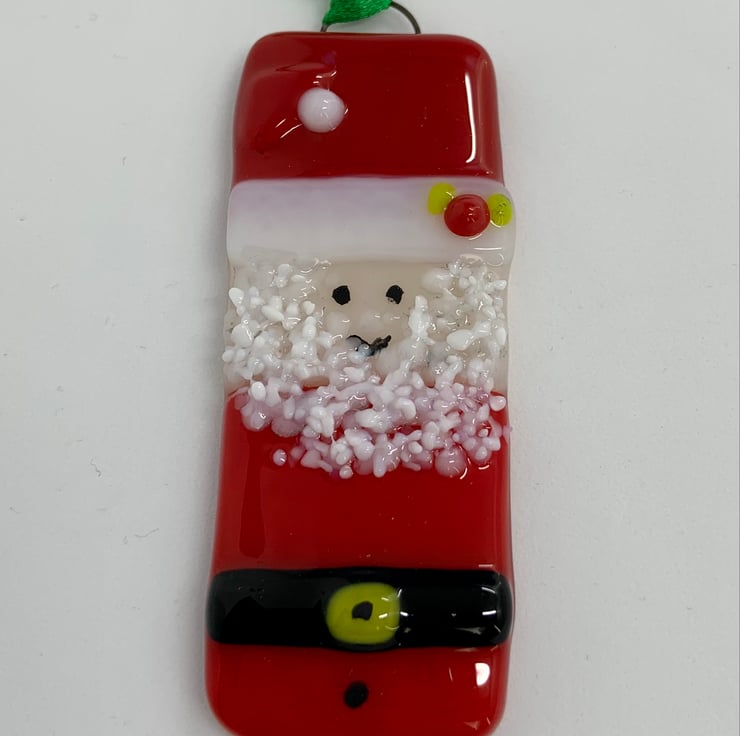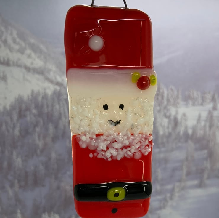 Handmade Fused Glass Santa Hanging Christmas Decoration.