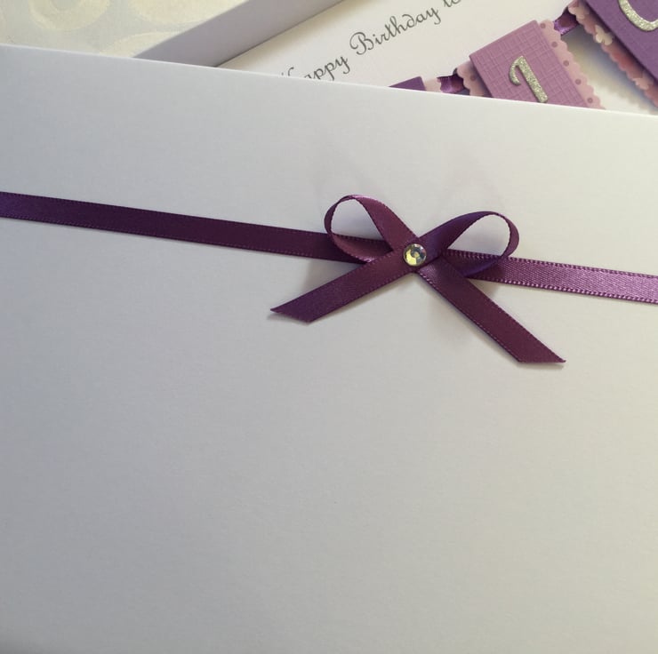 The card comes with the matching embellished gift box shown in the photographs. Cards are sent by First Class Royal Mail.