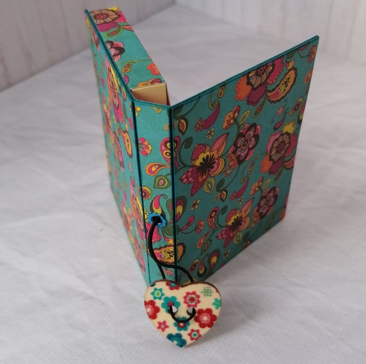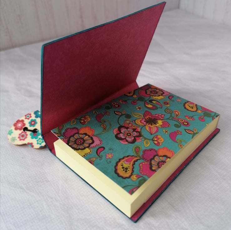 Inside is an adhesive notebook (76x51mm) of 100 pages finished with a matching cover.