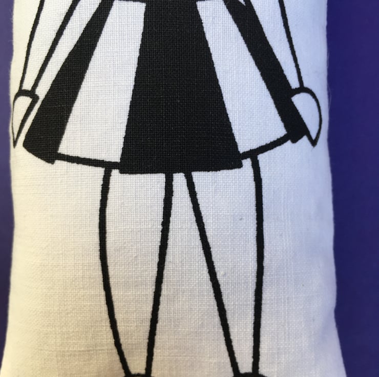 I screen printed Berta with a screen I made myself from my own original artwork on one of my Great Grandmothers 1950’s white cotton bedsheets.