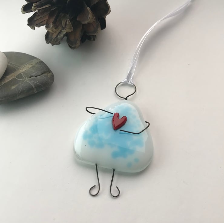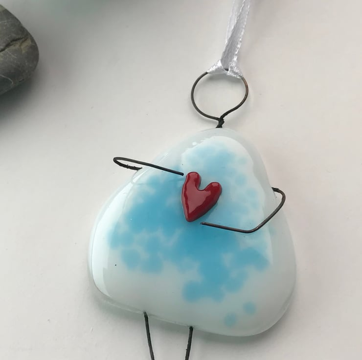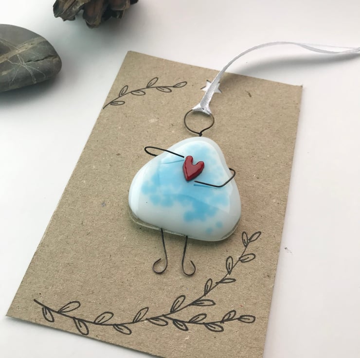 Are you wanting to send someone a hug or let them know you are thinking of them? This wire and fused glass girl holding a heart is a lovely way to do this.