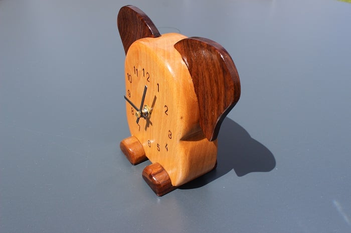I was inspired by relations looking for a suitable clock for a childrens bedroom. Rather than the traditional wall clock, I was looking for a free standing design which would appeal to both children and adults. I experimented with a range of animal pictures seeking those with clear attributes which make them distinctive in a stylised design. The mouse clock was the first in a range of animal clocks featuring elephants, rabbits, dogs etc.