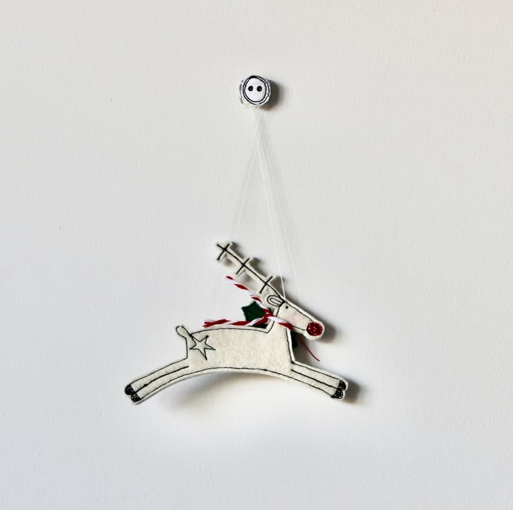 Suspend Rudolph using the linen thread loop and it will definitely bring a smile to your face.