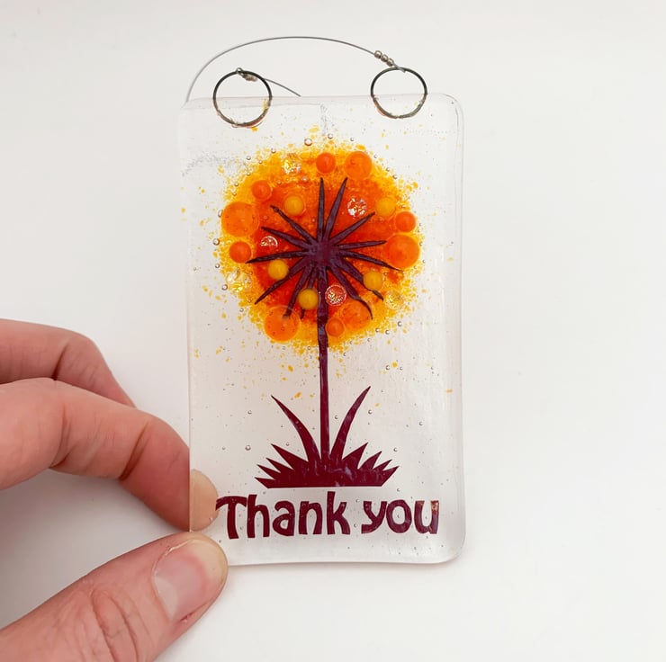 Fused Glass "Thank You" Orange Allium Hanging - Handmade Glass Suncatcher