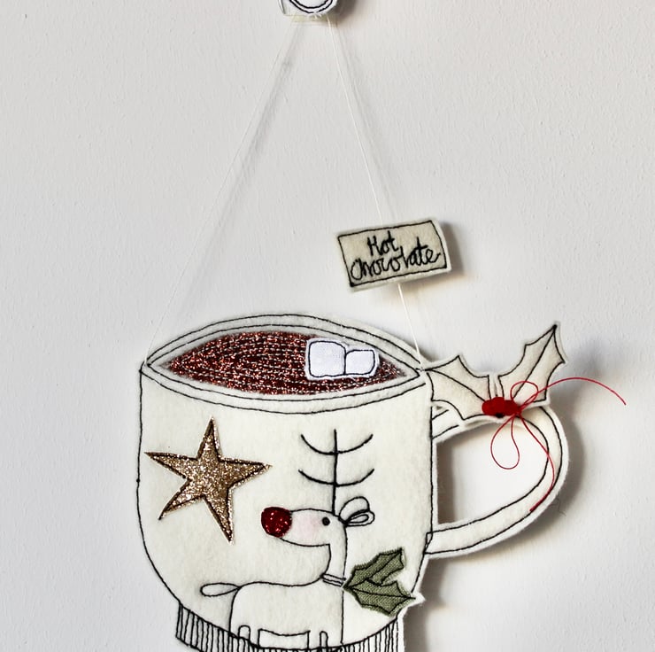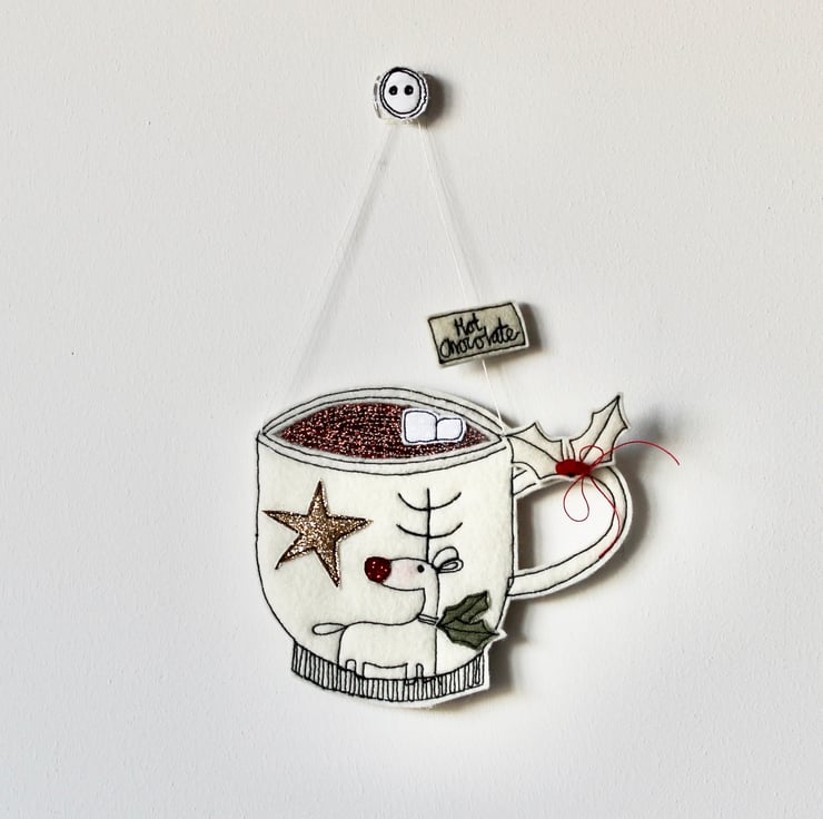 Suspend hot chocolate mug using the linen thread loop and it will definitely bring a smile to your face.