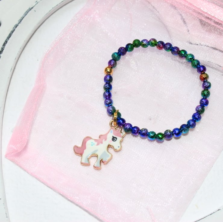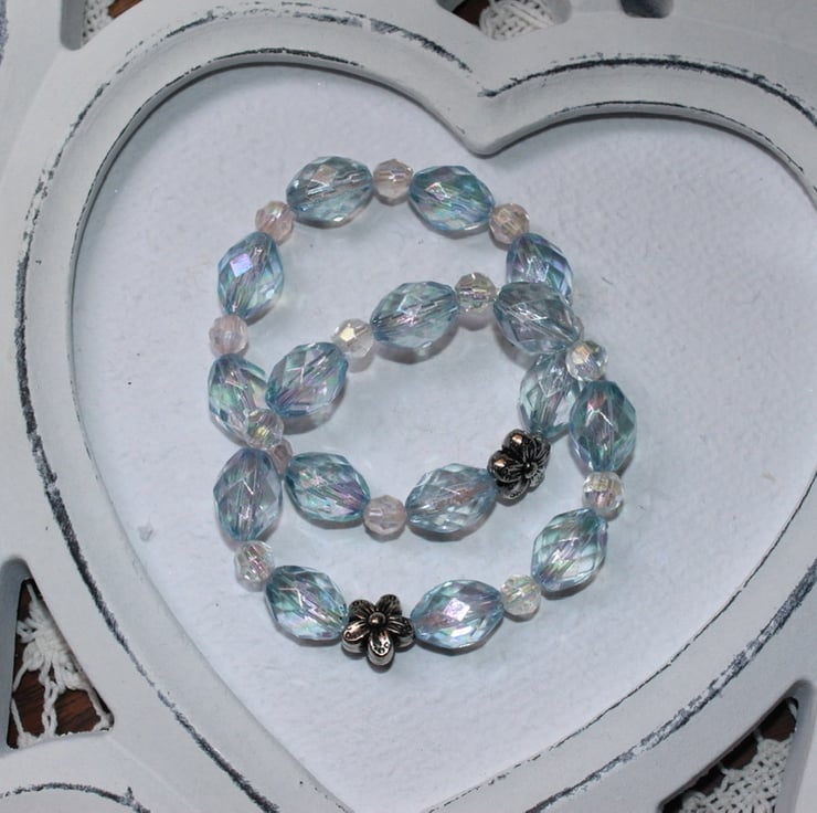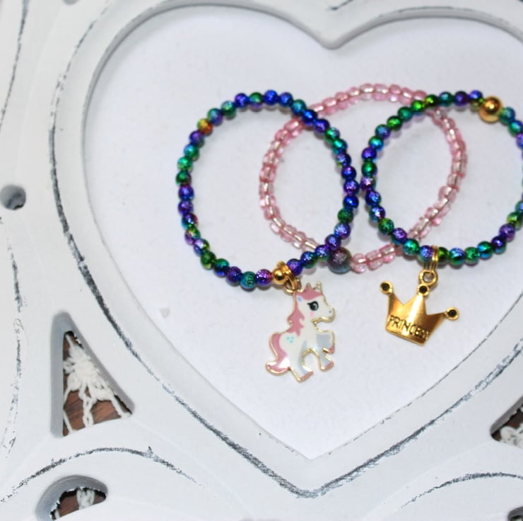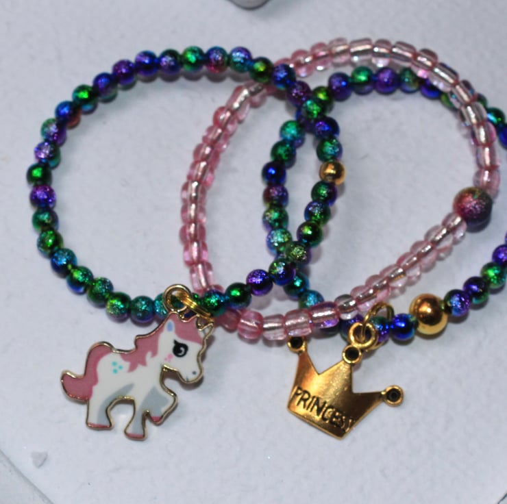 Elasticised bracelets for little princesses. To fit ages 1-4 and 5-7. Custom sizes made on request. Beautiful rainbow beads.