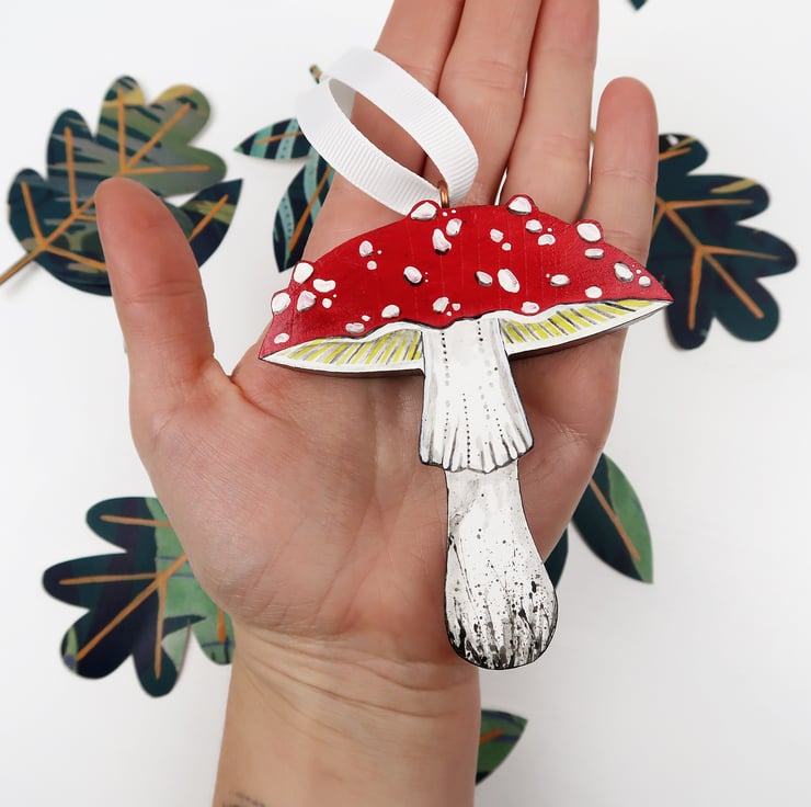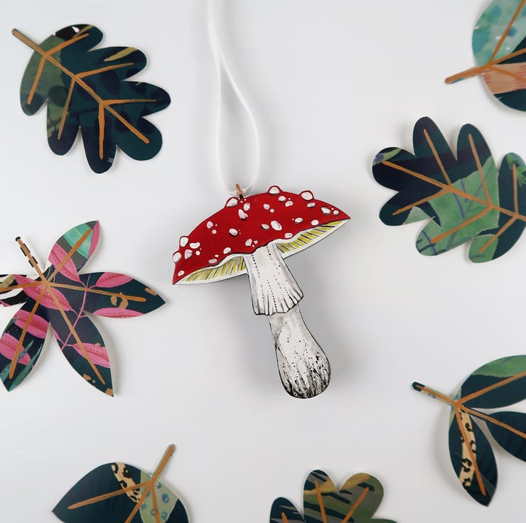 Beautiful wooden MUSHROOM Christmas tree hanging decoration.
