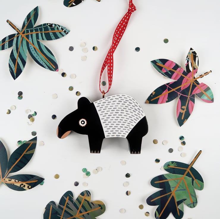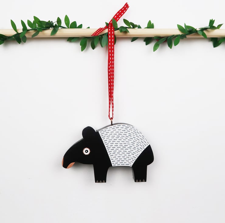 Beautiful wooden MALAYAN TAPIR Christmas tree hanging decorations.