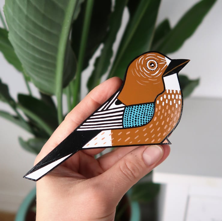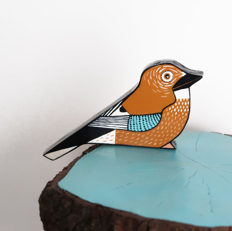 This miniature bird ornament is fully made by hands with love and huge attention to details. Made of pine wood & hand painted with acrylic paints. Varnished - semi gloss finish. Back is clear wood.