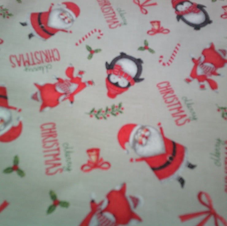 The design is Santa, Penguins and Foxes on a pale grey background.