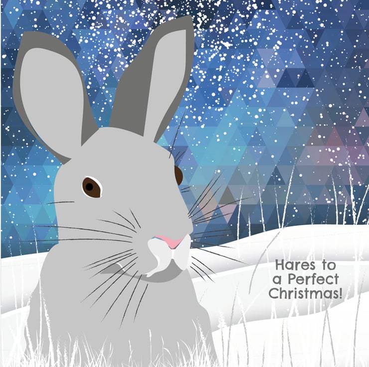 This unique Christmas card is inspired by the Hares we frequently see in the beautiful Machars of South West Scotland where we live, close to the Galloway Forest.