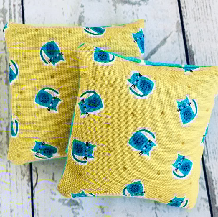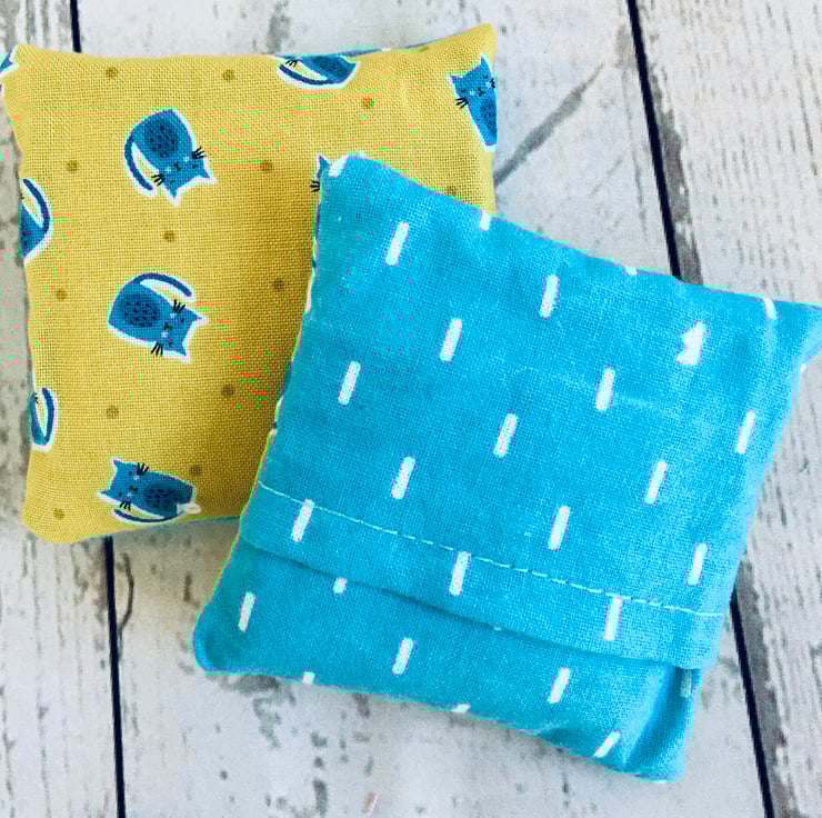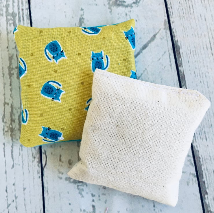 These hand warmers are made from 100% cotton and have a little bag of rice inside to heat in the microwave.
