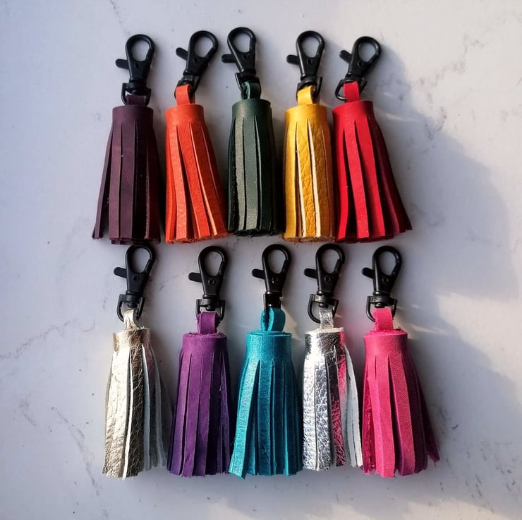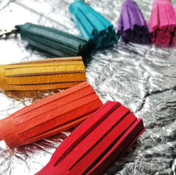 I love making tassels to adorn my earring ranges, and I have a lot of thicker luxurious leathers that are too heavy for earrings. So I created these colourful bag charms to add that little big extra to your keys or purses.