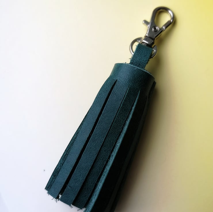 The tassel is attached to a strong swivel clip. Including the clip the length of the keyring is 10.5cm.