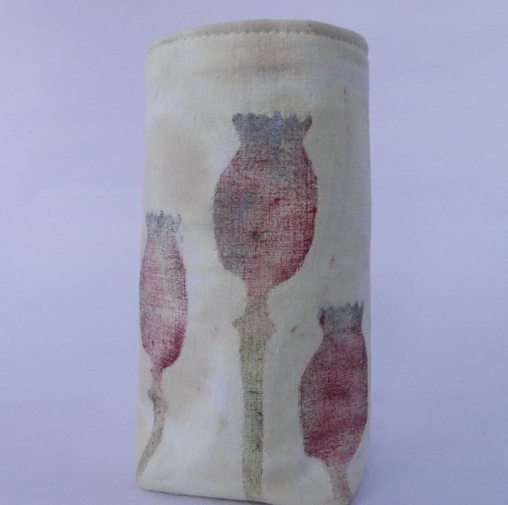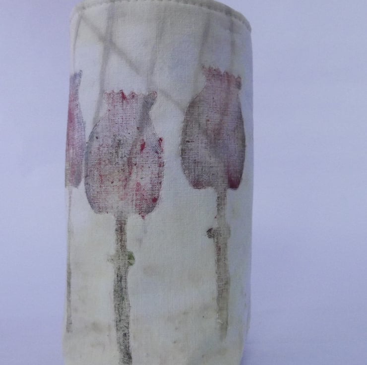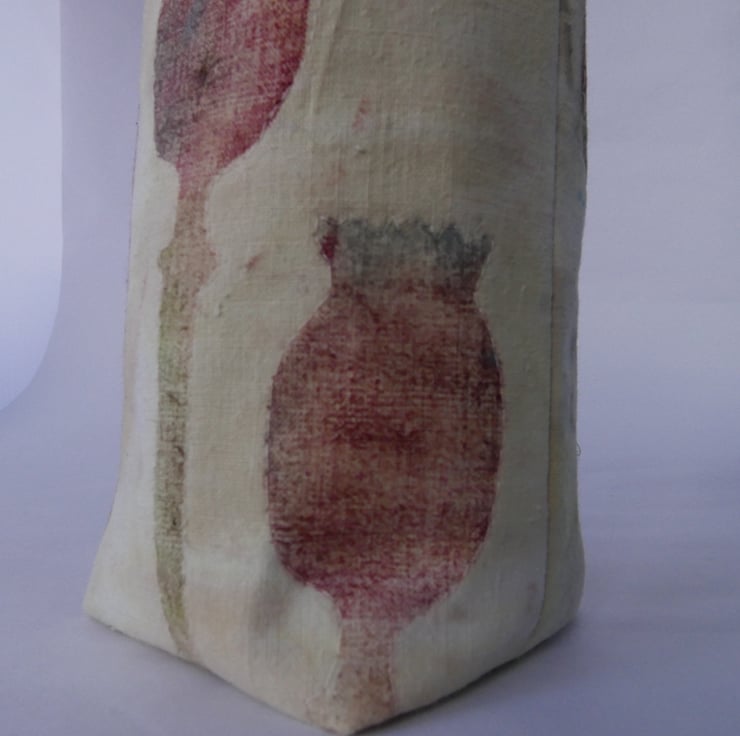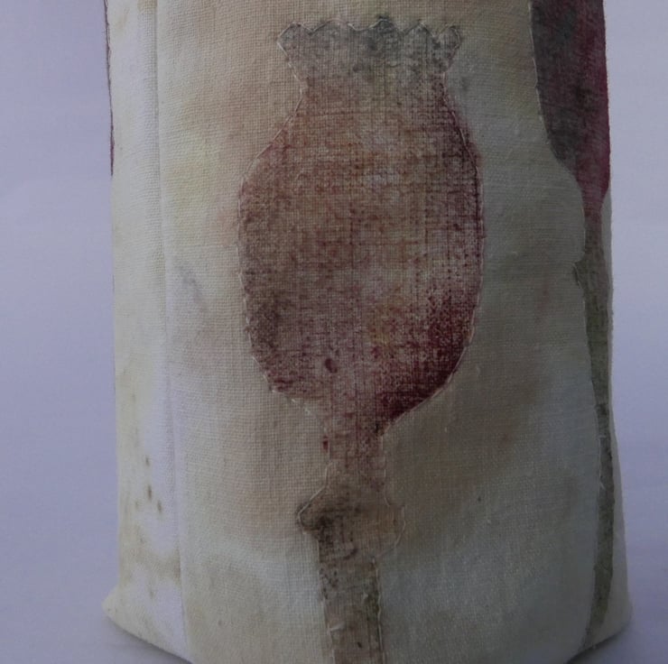 The fabric has been hand decorated and the detail of the poppy heads carefully machine stitched.