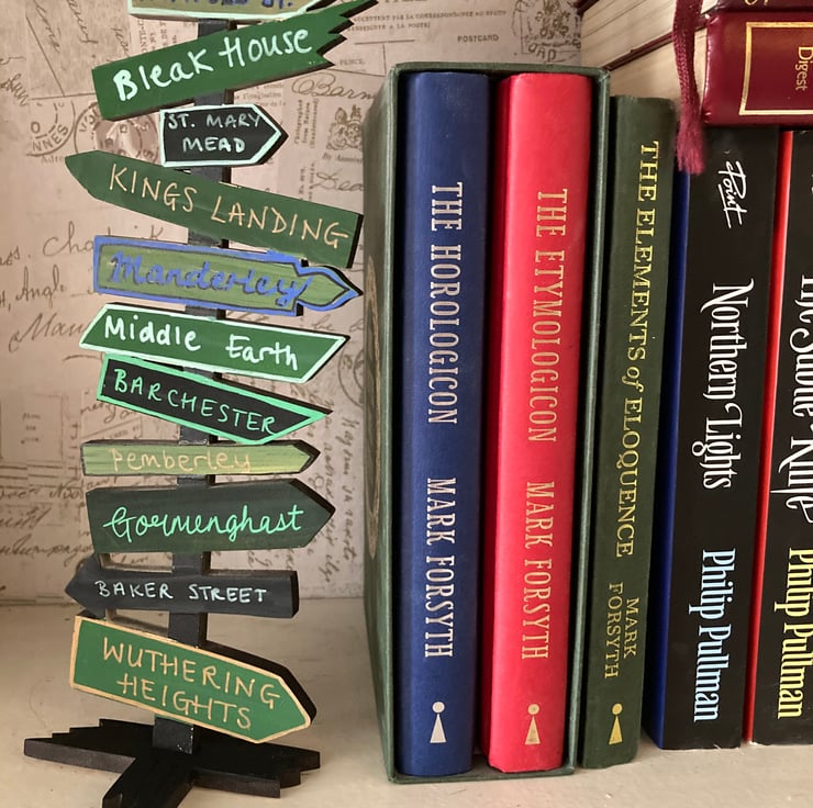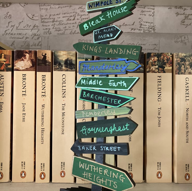 25cm signpost with locations from classic books. Perfect for book lovers. Can be customised if you send me a message!