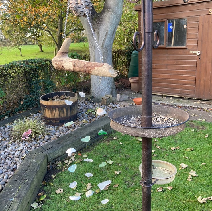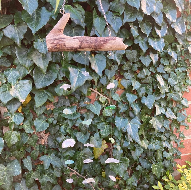 Driftwood and seaglass collected from my local beach in Withernsea work together well to make an up-cycled suncatcher to decorate either the garden or an inside window.