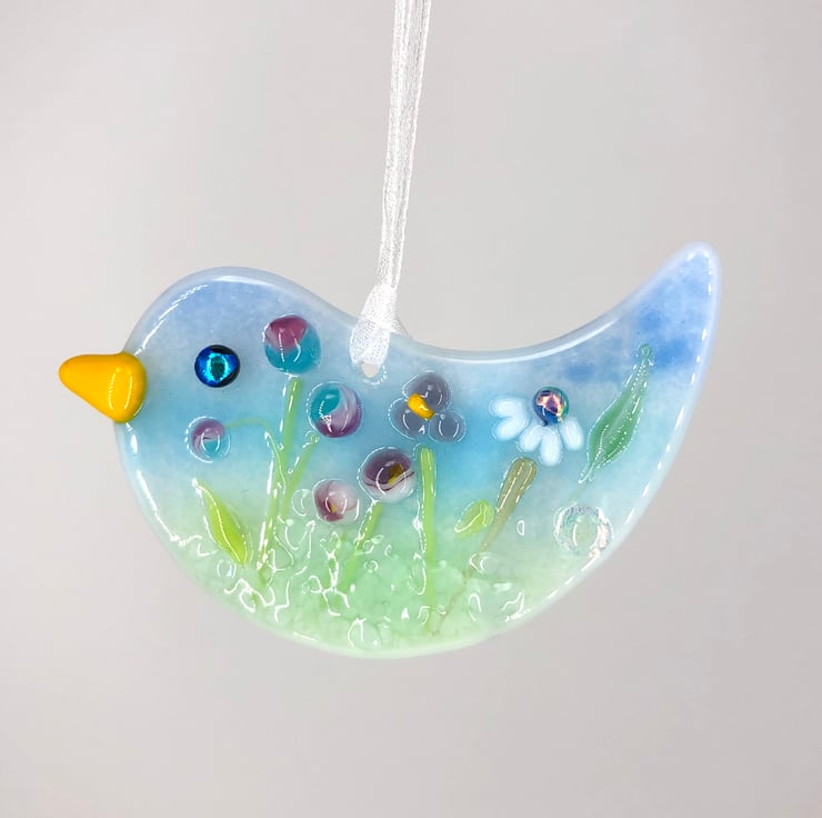 The bird measures approx. 7 x 4cm and comes in a length of organza ribbon for hanging.