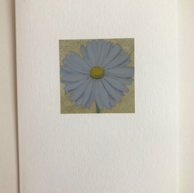 The image on the card is part of a series of 'flower icons' made for the 60th anniversary of a flower shop. The original paintings are oil on gesso with a gold leaf surround. Each one was a slightly different size, no more than 40 x 40cm.